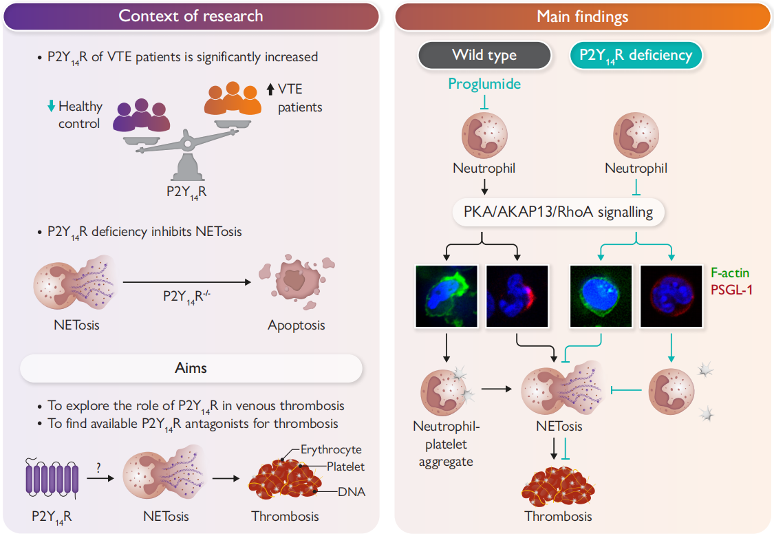 P2Y14R调控中性粒细胞NET释放参与血栓形成