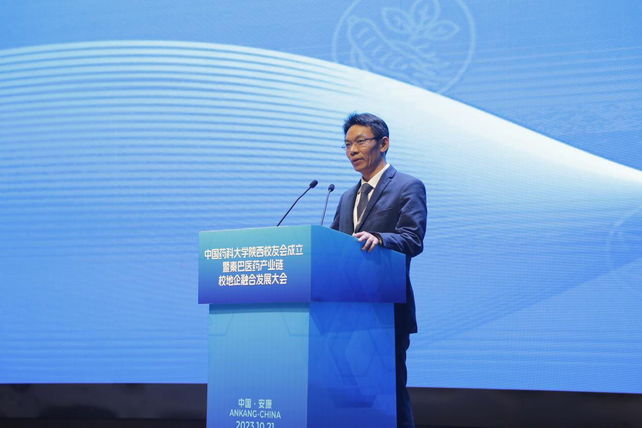 为全面推进乡村振兴,助力秦巴地区医药产业高质量发展,充分挖掘校友资源,10月21日,中国药科大学陕西校友会成立大会暨秦巴医药产业链校地企融合发展大会在陕西安康举办。我校校长郝海平、副校长姚和权,安康市委常委、副市长柴丽,陕西省工信厅二级巡视员郭正强,西安医学院党委副书记姚文柱等出席大会;我校相关部门负责人,陕西省相关厅局,安康市、镇坪县相关单位负责人,在陕校友、各地方校友会代表、校友企业代表、高校代表等300余人参加了活动,会议由安康市副市长周康成主持。