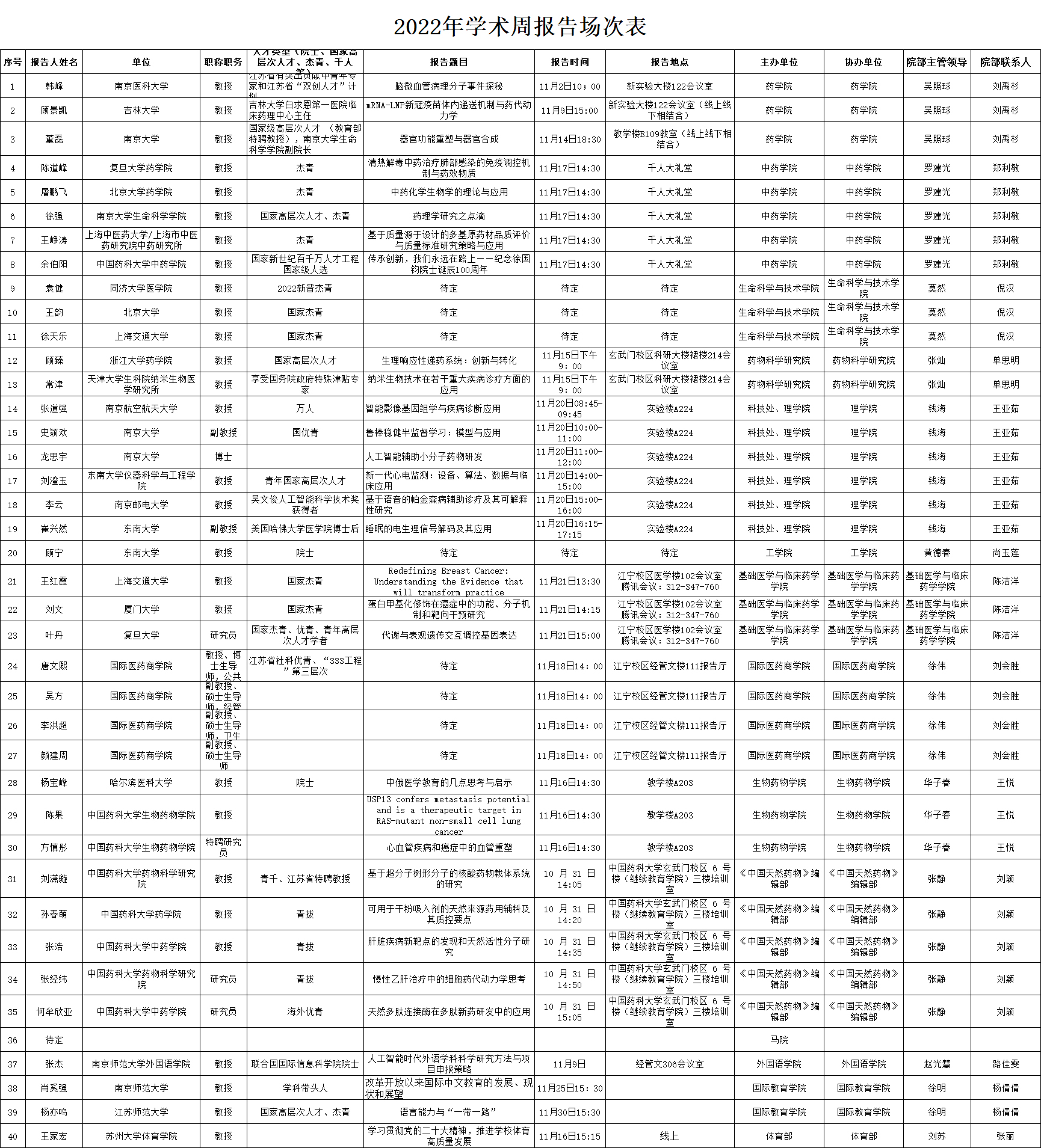 部分学术报告场次安排如下(以院部实际发布通知为准)
