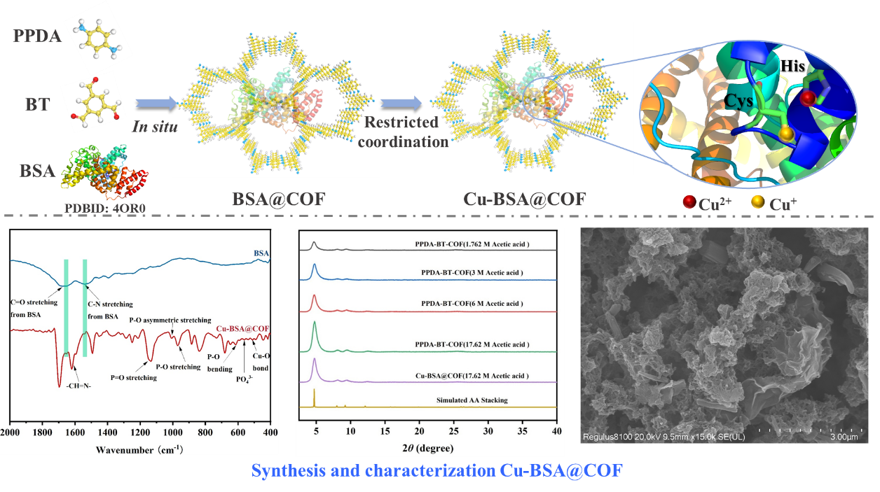 图1:Cu-BSA@COF的合成及部分表征