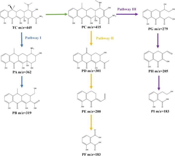 图4. GA-Cu 纳米酶对TC的可能降解途径