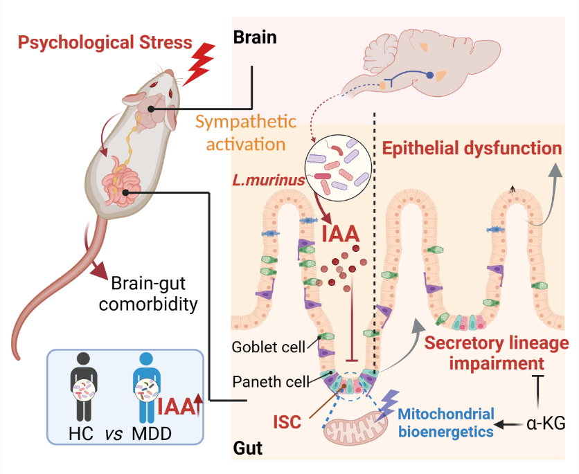 Cell Metab|郝海平/王广基/郑啸团队发表封面文章揭示精神心理压力影响肠细胞谱系分化的代谢调控机制