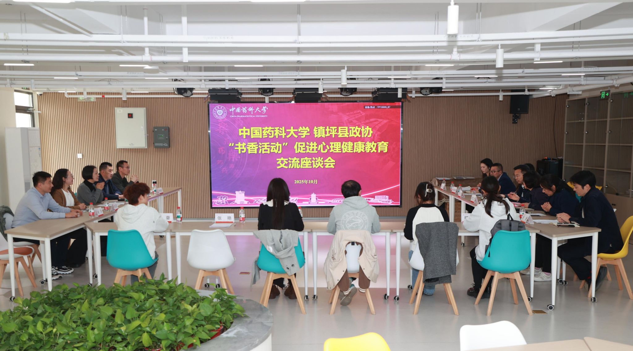 22日下午,在江宁校区文菁苑孟目的书院博采天地报告厅召开中国药科大学-镇坪县政协“书香活动”促进心理健康教育交流座谈会,陈卫忠代表学校对于延媚一行的到来表示欢迎。他表示,从脱贫攻坚到乡村振兴,校地合作不断深化,希望通过此次交流促进校地心理健康教育合作,推进思政教育“大中小”一体化发展,谱写校地合作新篇章。于延媚对学校多年来的倾情帮扶表示感谢,并介绍了心理健康教育的重要作用,希望以此为契机进一步深化校地心理健康教育交流,强化思政教育合作,共促校地合作新局面。